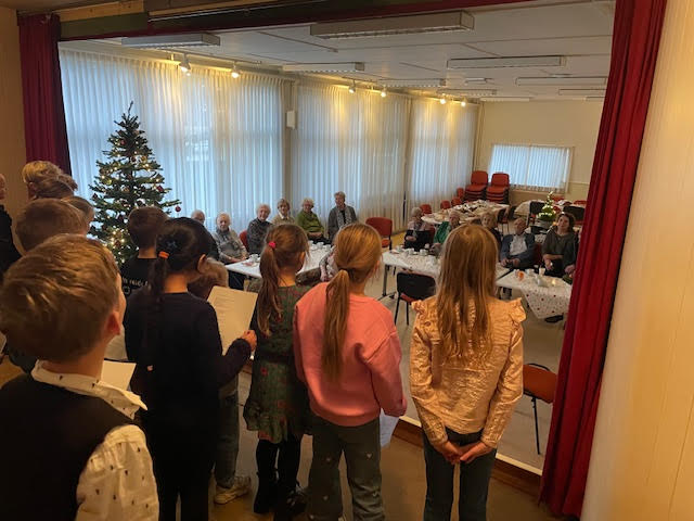 Heinenoord – Donderdag 19 december zorgden de leerlingen van groep 3 en 5 van basisschool De Regenboog voor een feestelijke kerstsfeer tijdens de kerstlunch van Buurtzorg Heinenoord in De Erve. Met hun zang brachten de kinderen warmte en gezelligheid naar de cliënten, die zichtbaar genoten van de kerstliedjes.