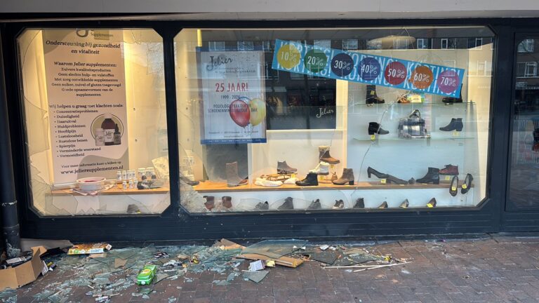 Puttershoek – De schoenenwinkel en podologiepraktijk Jelier in Puttershoek is zwaar beschadigd geraakt door een vuurwerkincident. Op Nieuwjaarsdag bleek een van de etalageruiten volledig verbrijzeld, vermoedelijk door zwaar vuurwerk dat vlak voor de winkel tot ontploffing is gebracht. Glasscherven lagen verspreid over het trottoir, en de schade aan de winkel is aanzienlijk.