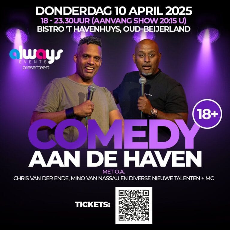 Zet donderdag 10 april 2025 in je agenda, want Bistro ’t Havenhuys in Oud-Beijerland wordt dé hotspot voor een avond vol humor! Always Events presenteert Comedy aan de Haven, een hilarische avond met topcomedians en veelbelovend nieuw talent.