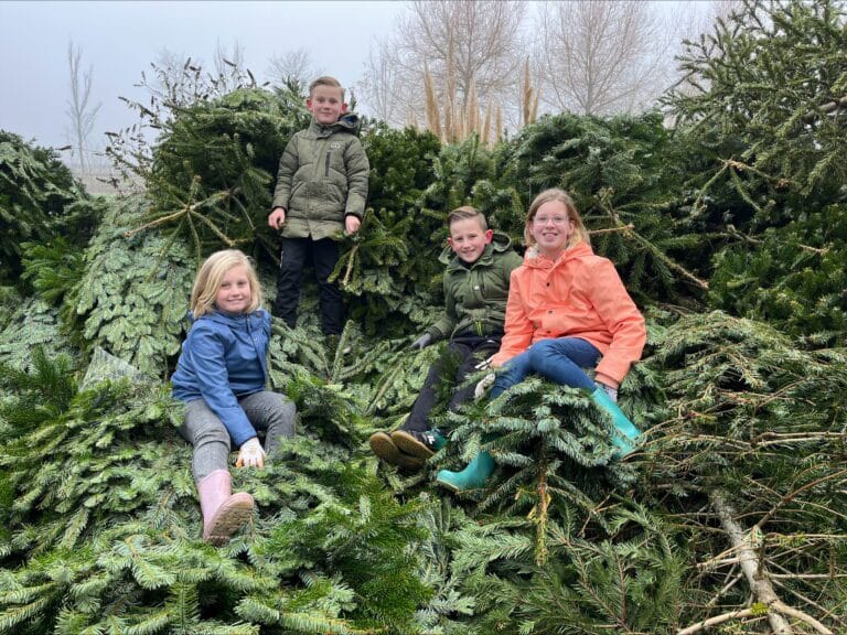 Met hulp van opa Breevaart en zijn trouwe bus hebben de kinderen dagenlang hard gewerkt om de bomen in de wijk op te halen. Hun inzet werd beloond: de spaarpot is flink gevuld, en de vier kijken alweer uit naar volgend jaar.