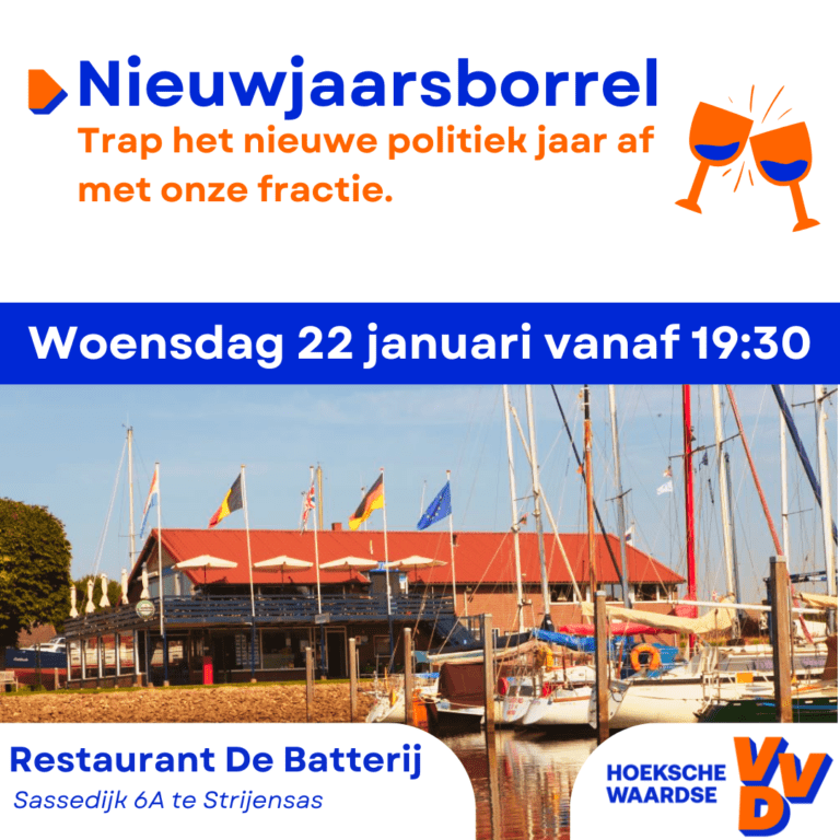 Woensdag 22 januari nodigt de VVD Hoeksche Waard iedereen van harte uit voor een feestelijke nieuwjaarsborrel. Dit is hét moment om samen het nieuwe politieke jaar te starten, te praten over de toekomst van ons prachtige eiland en kennis te maken met de fractie en andere leden.