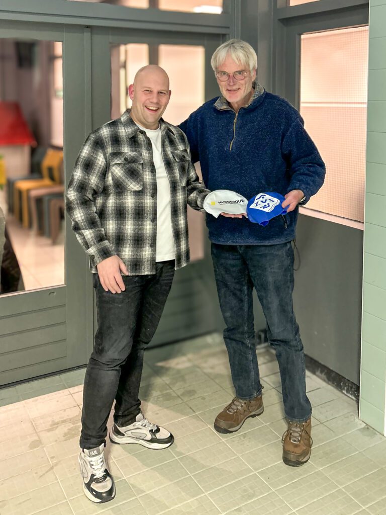 ’S-GRAVENDEEL – Vrijdag 9 januari 2025 werden nieuwe badmutsen uitgereikt aan Zwem- en Waterpolovereniging ZVS-AXEA uit ’s-Gravendeel dankzij een nieuwe sponsor. Voor dhr. Hartman (links op de foto), directeur van Muddebouw uit Capelle aan den IJssel, is het zwembad geen onbekend terrein want zijn kinderen zijn ook actief binnen de vereniging. Hij kwam deze avond de nieuwe badmutsen persoonlijk overhandigen aan Arie Mol (rechts op de foto), de algemeen voorzitter van de Zwem- en Waterpolovereniging.