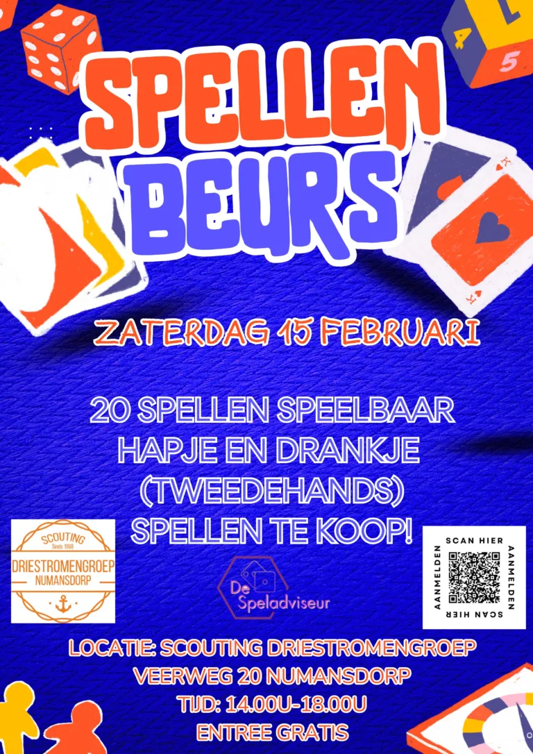 Scouting Driestromengroep uit Numansdorp organiseert een spellenbeurs! Houd jij van spelletjes spelen? Dan ben je van harte welkom op zaterdag 15 februari tussen 14.00 uur en 18.00 uur. Met hulp van De Speladviseur staan er twintig spellen voor je klaar. Denk hierbij aan de nieuwere kaartspellen, bordspellen en gezelschapsspellen. Direct speelbaar en met iemand om jullie uitleg te geven! Enthousiast over de gespeelde spellen? Dan kun je ze direct aanschaffen en thuis verder spelen!