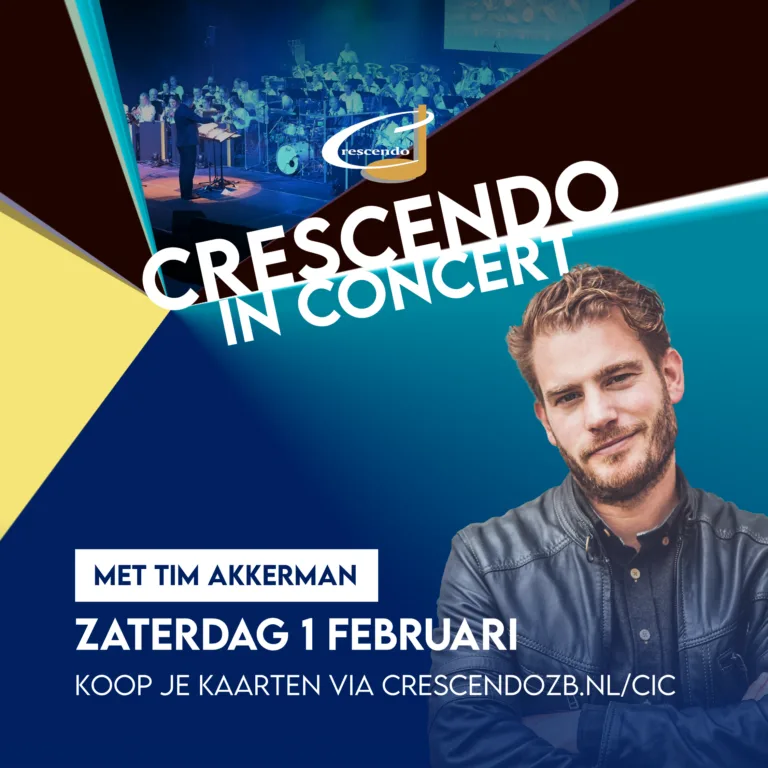 Ontsnap uit de dagelijkse sleur en kom a.s. zaterdag muzikaal genieten bij Crescendo in Concert 2025! Tijdens deze welbekende concertshow speelt het 60-koppige orkest van Crescendo uit Zuid-Beijerland een zeer afwisselend programma. Met speciale gasten Tim Akkerman (DI-RECT, Beste Zangers) en trompettist Richard Visser (Johan Willem Friso kapel) belooft dit concert een fantastische avond te worden.