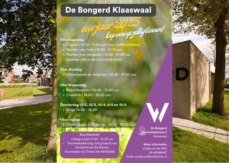 Vanaf maandag 3 februari zullen de activiteiten die voorheen plaatsvonden in het Korstanjehuis starten in de voormalige kantine van sporthal De Bongerd aan de Klaverbladstraat 3 te Klaaswaal. De ruimte is prachtig opgeknapt en heeft echt de sfeer van een ontmoetingsruimte.
