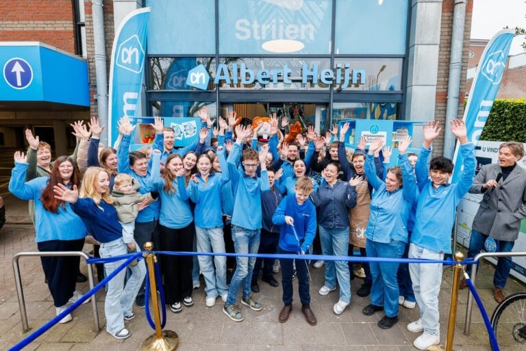 Na twee weken verbouwen ging vandaag de Albert Heijn van ondernemers Dennis en Robin Groen aan de Kerkstraat 18 in Strijen weer open. Om 11:00 uur knipte Morris, zoon van Dennis Groen, het lintje door. De supermarkt is uitgebreid met het naastgelegen pand waar voorheen de Etos zat en omvat nu zo’n 1.600 vierkante meter. Bijna alles in de winkel is vernieuwd en ook het aanbod flink vergroot. De verbouwing werd zoveel mogelijk circulair uitgevoerd.