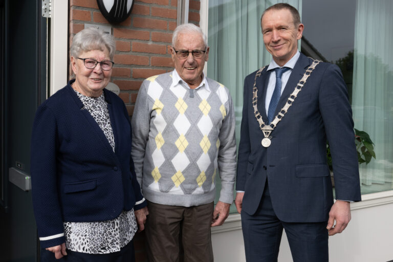 Het is vandaag 65 jaar geleden dat meneer P. de Ruiter (87) en mevrouw A.M. de Ruiter-Reijerkerk (83) uit Zuid-Beijerland in het huwelijksbootje stapten. Waarnemend burgemeester Erik van Heijningen ging vanochtend langs met een mooie bos bloemen. Hij feliciteerde hen namens het gemeentebestuur met dit briljanten jubileum.