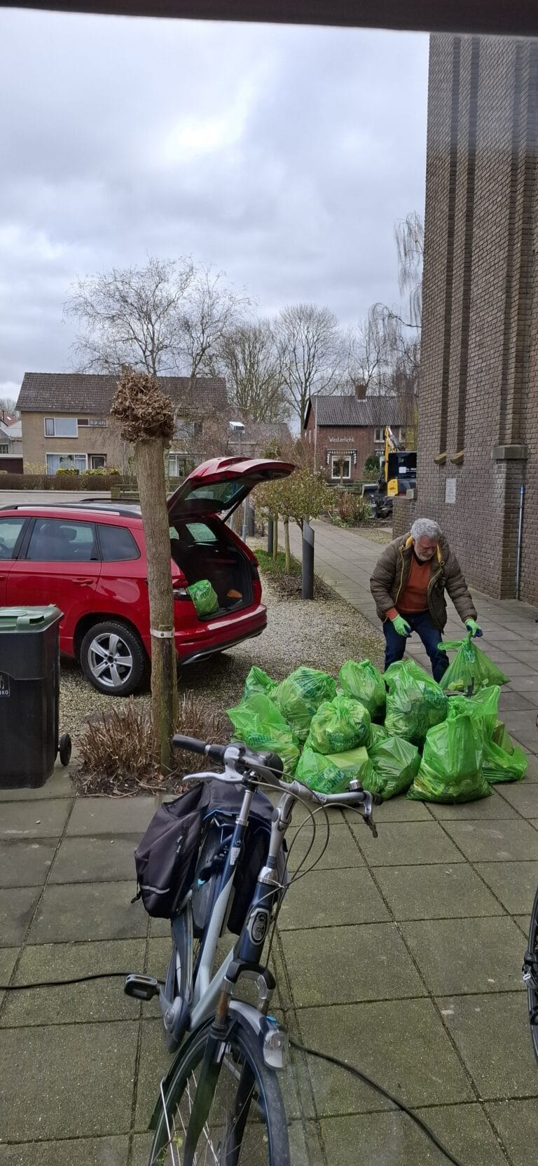 Na een kop koffie verzamelden de deelnemers zich in tweetallen en verspreidden ze zich door het dorp en de omliggende dijken. Overal waren groene vuilniszakken te zien, gevuld met zwerfafval dat anders op straat zou blijven liggen. Sigarettenpeuken, blikjes, bierflesjes, fietsonderdelen en zelfs een groot stuk piepschuim – het was een kleine greep uit wat werd opgehaald.