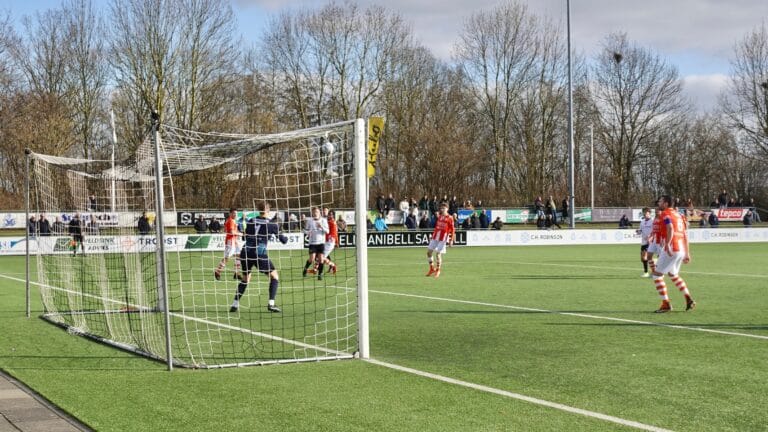 SHO werd slordiger en Oranje Wit rook kansen. Doelman Robin Boot moest een paar keer ingrijpen maar kon niet voorkomen dat Mike Muijen in blessuretijd de aansluitingstreffer kon maken: 3-2. In de resterende handvol minuten gaf SHO niks meer weg en hield de punten op de Kikkershoek, goed voor de derde plek op de ranglijst.