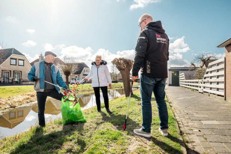 Mevrouw Heistek, huurder van HW Wonen, en haar overbuurman meneer Barendregt vormden een duo en met twee volle vuilniszakken leverden zij een waardevolle bijdrage aan deze actie. Mevrouw Heistek: “Natuurlijk draag ik een steentje bij! Veel handen maken licht werk en ik help graag mee. En het is ook nog eens heel gezellig zo met elkaar.”