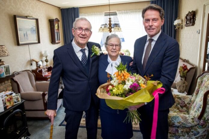 Het is vandaag 60 jaar geleden dat meneer J.W. Put (84) en mevrouw W. Put-Schelling (81) uit Nieuw-Beijerland in het huwelijksbootje stapten. Wethouder Paul Boogaard ging vanmiddag langs met een mooie bos bloemen. Hij feliciteerde hen namens het gemeentebestuur met dit diamanten jubileum.
