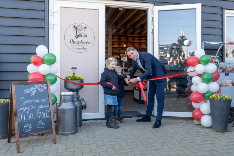 MAASDAM – Op zaterdag 5 april is Landwinkel De Maashoeve feestelijk geopend door wethouder Paul Boogaard en ondernemers Edith en Teun Verduijn. De nieuwe winkel, gelegen aan de Zwanegatsedijk in Maasdam, biedt een gevarieerd assortiment streekproducten en fungeert tevens als rustpunt voor recreanten.