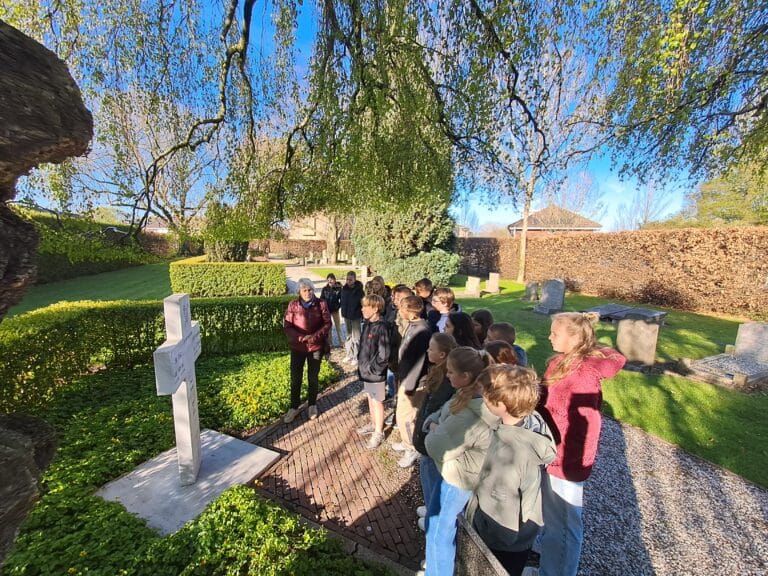 Leerlingen van de groepen 7 van basisschool De Bouwsteen in ’s-Gravendeel brachten deze week een bijzonder bezoek aan de Oude Begraafplaats. In aanloop naar de 4 mei-herdenking kregen zij daar uitleg over het Indië-monument en het herdenkingsmonument voor de gevallenen uit de Tweede Wereldoorlog.