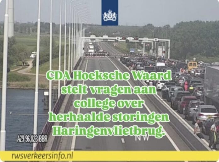 Het CDA in de Hoeksche Waard heeft het college schriftelijke vragen gesteld over de aanhoudende storingen aan de Haringvlietbrug. Aanleiding is de opnieuw langdurige stremming op zondag 11 mei, waarbij weggebruikers – waaronder veel inwoners van de gemeente – urenlang vaststonden in de hitte.