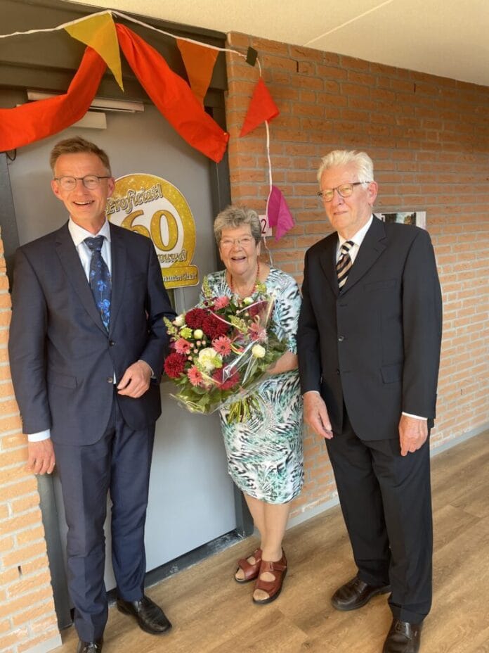 Het is vandaag, op 12 mei, 60 jaar geleden dat meneer J. den Hartigh (82) en mevrouw A.J. den Hartigh-Louter (77) uit Oud-Beijerland in het huwelijksbootje stapten. Wethouder Harry van Waveren Steen ging vanmiddag langs met een mooie bos bloemen. Hij feliciteerde hen namens het gemeentebestuur met dit diamanten jubileum.