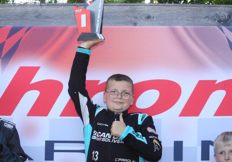 “Ja, dat was er wel eentje uit het boekje!”, zei Kay enthousiast over zijn winnende race. Het daverende optreden van de jonge karter kwam niet uit de lucht vallen. Dit seizoen doet hij als Nederlands kampioen van vorig jaar in de Parolin Rocky Mini F2-klasse meteen vooraan mee.