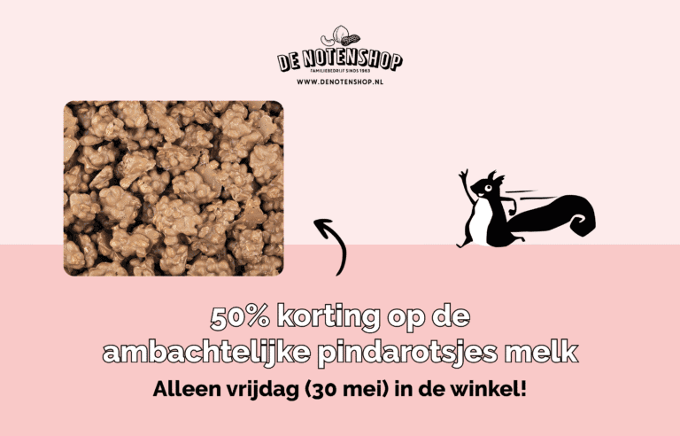 Alleen vrijdag 30 mei: 50% korting op ambachtelijke pindarotsjes melk 400 gram in de winkel van De Notenshop!