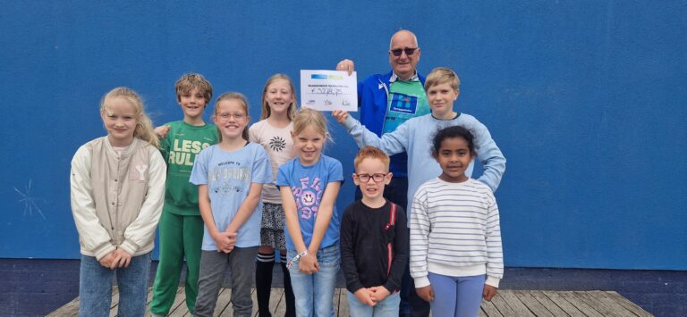 De warming up en begeleiding was in handen van Roparunteam 262 ‘Stichting Sterk Staaltje’, waar wij al eerder een mooi bedrag aan konden doneren. De waterpost die halverwege het parcours stond, had door het mooie weer de handen vol. De kinderen hebben zichzelf volledig in het zweet gerend om zoveel mogelijk gesponsorde rondjes af te kunnen stempelen, aangemoedigd door de vele toeschouwers. Sommige ouders probeerden hun kind bij te houden en scoorden zo dubbele stempels. Ook de jonge kinderen van het kinderdagverblijf deden mee. En wat een succes was het weer! De twee locaties konden later die week Ad de Vlaming, secretaris en fietser van ‘Stichting Sterk Staaltje’, verblijden met een cheque van maar liefst € 3278,75!
