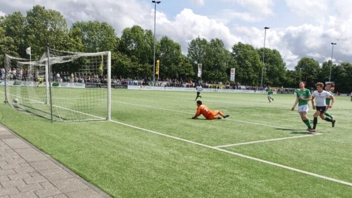 Met nog een paar minuten in de reguliere speeltijd op de klok weer een levensgevaarlijke aanval van SHO. Bij de voorzet van Yur Snoek werd de inkomende Joost van Eck gevloerd, wat strafschopwaardig leek, maar scheidsrechter Kieft liet doorspelen waardoor Jesse Vermaat in balbezit kwam en hij liet doelman Pamuk voor de tweede keer ‘vissen’: 2-0 en beslist, zo leek het. Maar al ruim in de extra tijd zorgde een verdedigende slordigheid er voor dat VELO alsnog aansluiting kreeg: 2-1 wat vervolgens nog een handvol spannende minuten opleverde. Maar na negen minuten extra vond de prima leidende Martijn Kieft het genoeg en met zijn laatste fluitsignaal blies hij ‘Steeds Hooger’ naar de vierde divisie, waarna natuurlijk de bekende taferelen volgden. Juichende SHO spelers met de staf en teleurstelling en balen aan de kant van VELO. In de twee deze week afgewerkte wedstrijden ontliepen SHO en VELO elkaar nauwelijks en dan maakt één doelpunt meer of minder gelijk een wereld van verschil.