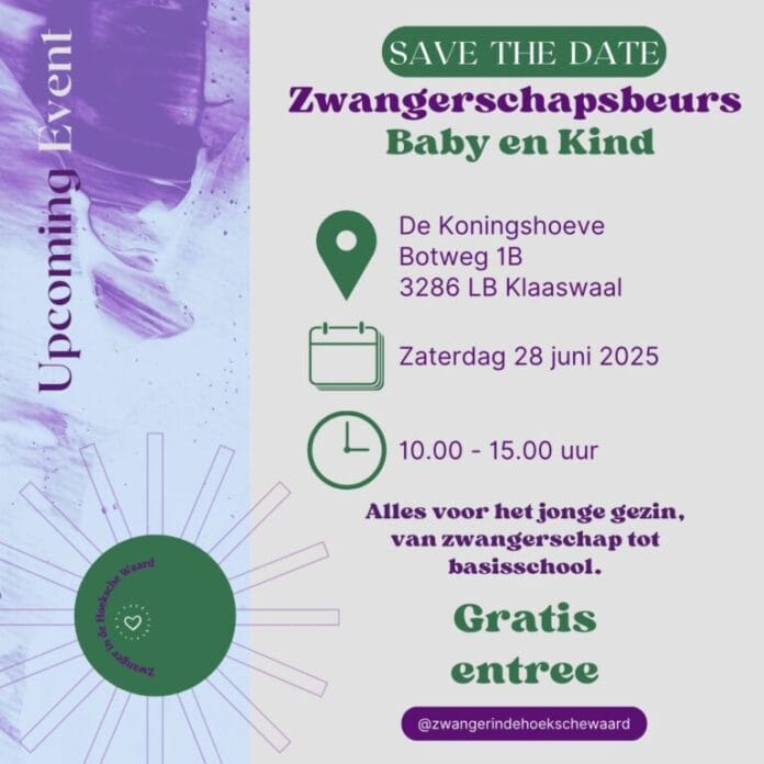 Klaaswaal – Op zaterdag 28 juni 2025 is de Zwangerschapsbeurs te bezoeken in De Koningshoeve (Botweg 1B) in Klaaswaal. Van 10.00 tot 15.00 uur is er alles te vinden voor jonge gezinnen, van zwangerschap tot de basisschoolleeftijd. De entree is gratis.