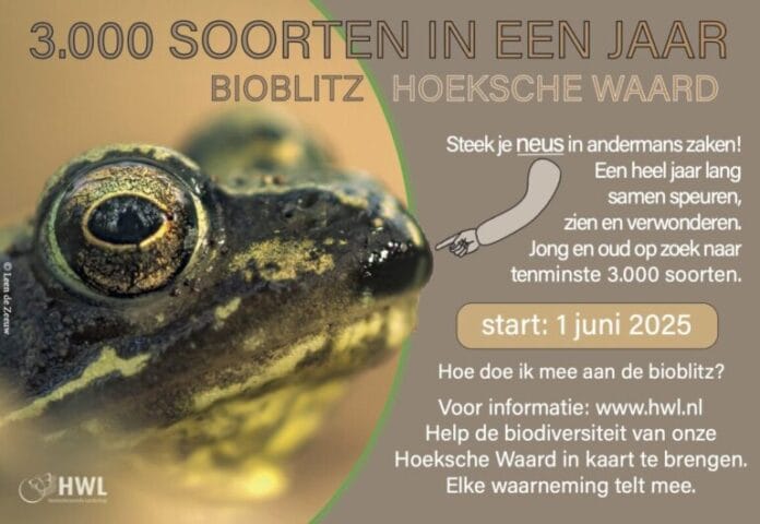 Vanaf 1 juni jl. tot en met 1 juni 2026 gaan we samen op ontdekkingstocht in de prachtige natuur van de Hoeksche Waard. Een jaar lang speuren, zien en verwonderen – met één gezamenlijk doel: minimaal 3000 verschillende soorten planten, dieren en andere organismen in kaart brengen.