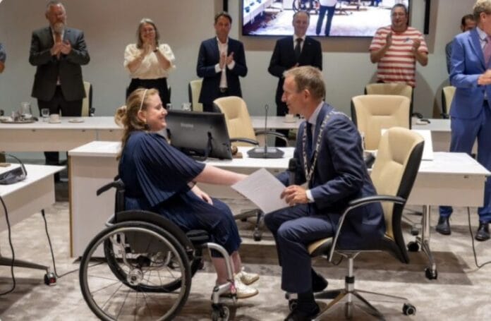 De benoeming vond plaats in een feestelijke en waardige setting in het gemeentehuis. Onder applaus van de raad kreeg Britt haar benoeming uit handen van burgemeester Erik van Heijningen.