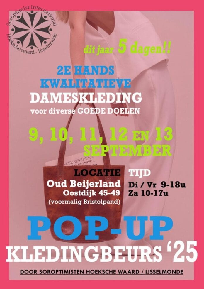 Goed nieuws voor modeliefhebbers en vintagejagers met een warm hart: de legendarische Pop-Up Tweedehands Dameskledingbeurs in Oud-Beijerland komt terug – en dit jaar langer dan ooit! Van dinsdag 9 t/m zaterdag 13 september kun je vijf dagen lang komen struinen tussen een stijlvolle, zorgvuldig geselecteerde collectie kleding, schoenen en accessoires voor dames en meiden.