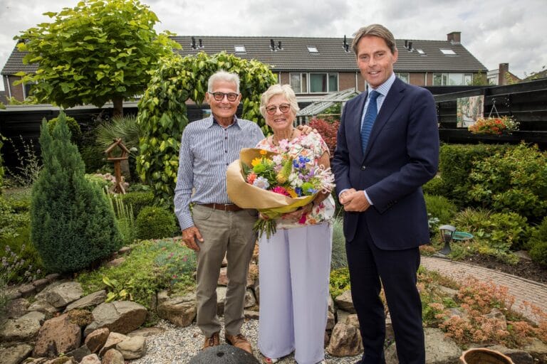 Het is vandaag, dinsdag 8 juli precies 60 jaar geleden dat meneer H.C. Kühlman (82) en mevrouw H. Kühlman-Rog (82) uit Oud-Beijerland elkaar het jawoord gaven. Wethouder Paul Boogaard ging vandaag langs met een mooie bos bloemen. Hij feliciteerde hen namens het gemeentebestuur met dit diamanten jubileum.