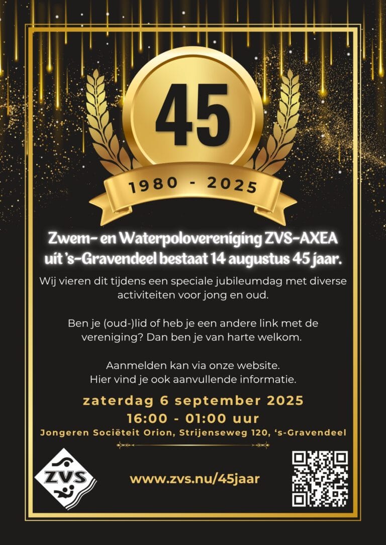 ‘s-Gravendeel – Zwem- en Waterpolovereniging ‘s-Gravendeel bestaat op 14 augustus maar liefst 45 jaar. Ter ere van dit bijzondere jubileum organiseert de vereniging op zaterdag 6 september 2025 een feestelijke jubileumdag voor jong en oud.