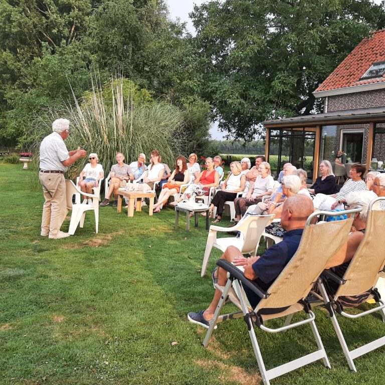 U bent welkom vanaf 15.00 uur en de middag eindigt om 17.00 uur. We hopen uiteraard op een mooie zwoele zomermiddag. Mocht het toch gaan regenen, dan verhuizen we naar binnen.