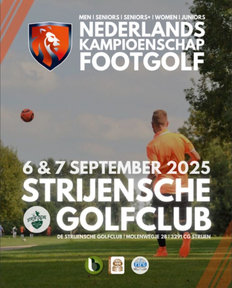 Strijen – Op zaterdag 6 en zondag 7 september vormt de Strijensche Golfclub het decor voor het Nederlands Kampioenschap FootGolf 2025. Twee dagen lang strijden de beste FootGolfers van Nederland om de nationale titel op de uitdagende baan in Strijen.
