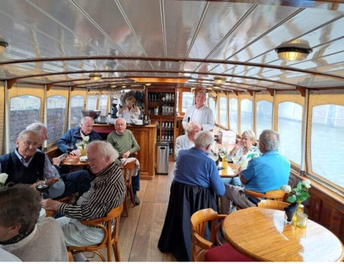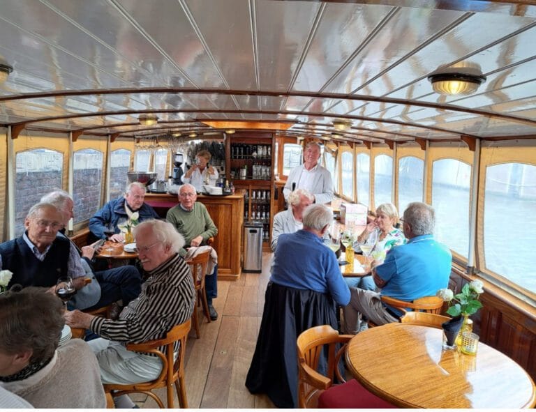 De Past Rotarians Hoeksche Waard bestaan 20 jaar en vierden dit jubileum met een feestelijke vaartocht bij de Zaanse Schans. Aan boord van salonboot Adeline genoten de leden en hun partners van koffie met gebak, een luxe lunch en het uitzicht op het industriële erfgoed.