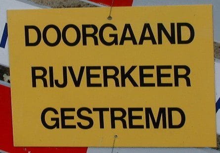 - Er zijn omleidingen voor fietsers en auto’s. Gele borden geven de route aan.