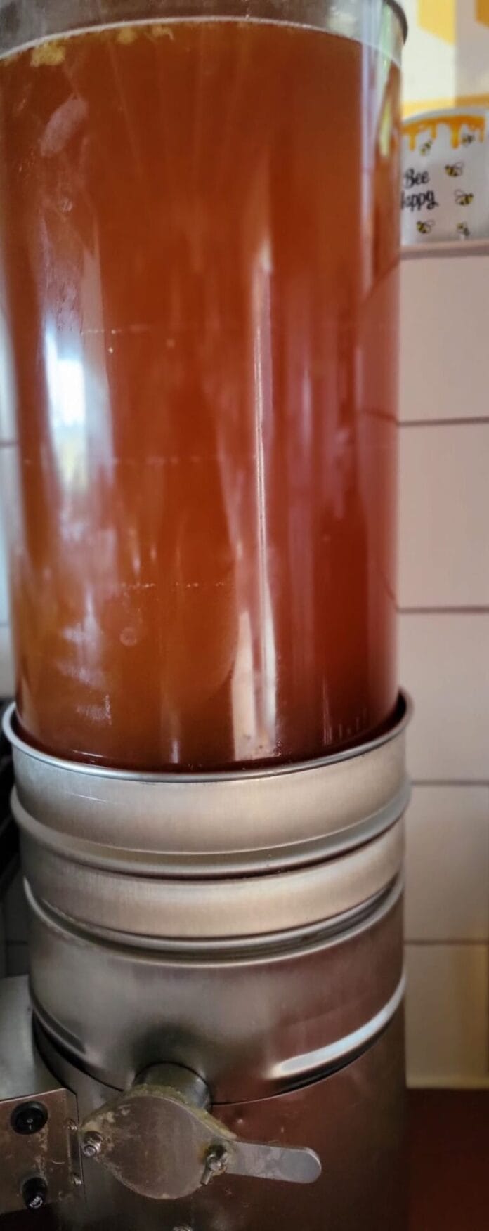 Als je zaterdag je eigen potje meeneemt, tappen wij de vloeibare honing uit het vat, terwijl je wacht. Het vat zit helemaal gevuld met heerlijke echte Hoeksche Waardse bloemenhoning.