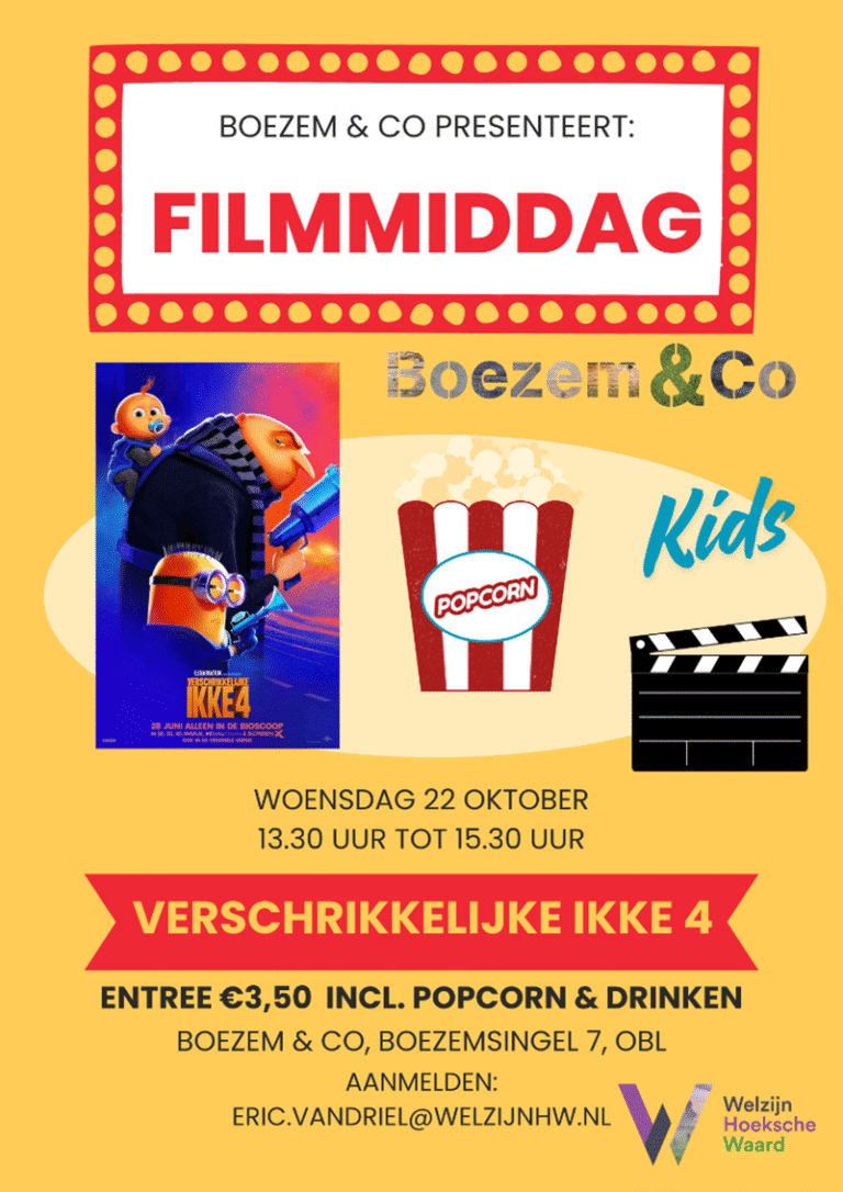 Tijdens de herfstvakantie organiseert Welzijn Hoeksche Waard een gezellige filmmiddag voor kinderen in Boezem & Co, gelegen aan de Boezemsingel 7 in Oud-Beijerland.