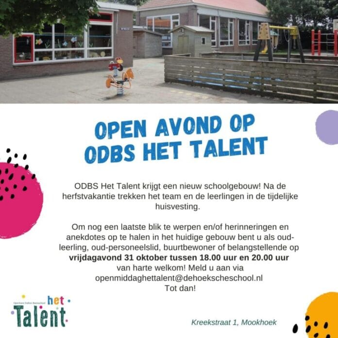 Mookhoek – Na de herfstvakantie starten het team en de leerlingen van ODBS Het Talent in een tijdelijk schoolgebouw, in afwachting van de bouw van het nieuwe IKC. Eindelijk gaat het dan gebeuren! Een prachtig nieuw schoolgebouw ligt in het vooruitzicht, compleet met peuter- en kinderopvang, een gemeenschappelijke ruimte die ook gebruikt kan worden voor en door de buurtvereniging – kortom: een mooie aanwinst voor de school én het buurtschap .