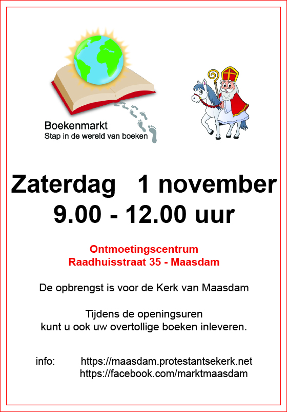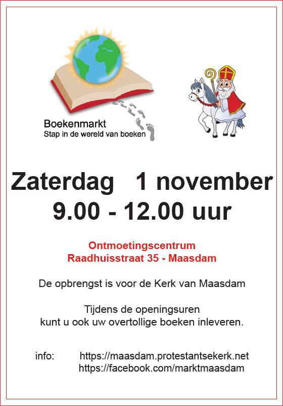 Op zaterdag 1 november is er weer Boekenmarkt in het Ontmoetingscentrum, Raadhuisstraat 35 in Maasdam, van 9.00 tot 12.00 uur. De boekenmarkt viert deze maand haar 16-jarig bestaan!