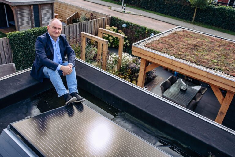 “Op warme dagen merk je echt verschil: de planten zorgen voor verkoeling, het sedum op de overkapping houdt de ruimte eronder een stuk koeler en het ziet er ook nog eens mooi uit. Bovendien zie je door al die planten steeds meer bijen en vlinders in de tuin”, vertelt hij.