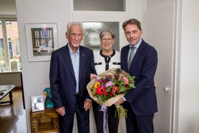 Het was zondag 26 oktober 60 jaar geleden dat meneer W. Saarloos (81) en mevrouw L. Saarloos-Luijendijk (80) uit Oud-Beijerland in het huwelijksbootje stapten. Wethouder Paul Boogaard ging maandagochtend 27 oktober langs met een mooie bos bloemen. Hij feliciteerde hen namens het gemeentebestuur met dit diamanten jubileum.