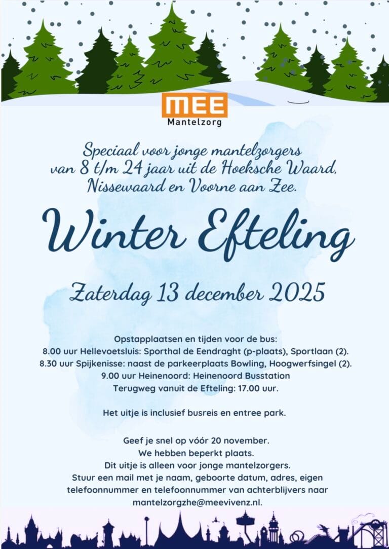 Om deze jongeren in het zonnetje te zetten, biedt MEE Mantelzorg dit jaar een waardering in de vorm van een cadeaubon van €25,-. Daarnaast organiseert MEE Mantelzorg leuke en verbindende activiteiten, zoals een dagje Efteling, de Brusjescursus (voor broers en zussen van zorgbehoevende kinderen), en diverse ontmoetingsmomenten waar jonge mantelzorgers elkaar kunnen leren kennen en ervaringen kunnen delen.