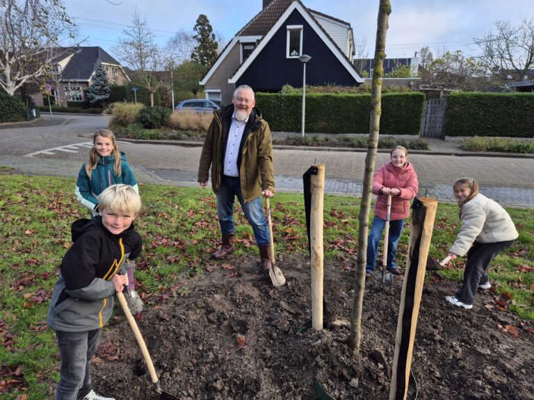 Wethouder Huibert Steen hielp de kinderen in Nieuw-Beijerland een handje met het planten van de bomen. “Het is elk jaar weer een feestje om samen met de kinderen mijn handen uit de mouwen uit de steken en bomen te planten. Dankzij de lessen op school, inclusief de gastles die door Hoekschewaards Landschap wordt gegeven, merk je dat kinderen steeds beter weten en snappen waarom bomen zo belangrijk zijn. Fantastisch vind ik dat, want door hen op jonge leeftijd – en in dit geval op een speelse manier – bewust te maken van het belang van een gezonde natuur, investeren we in een duurzame, groene en biodiverse toekomst.”