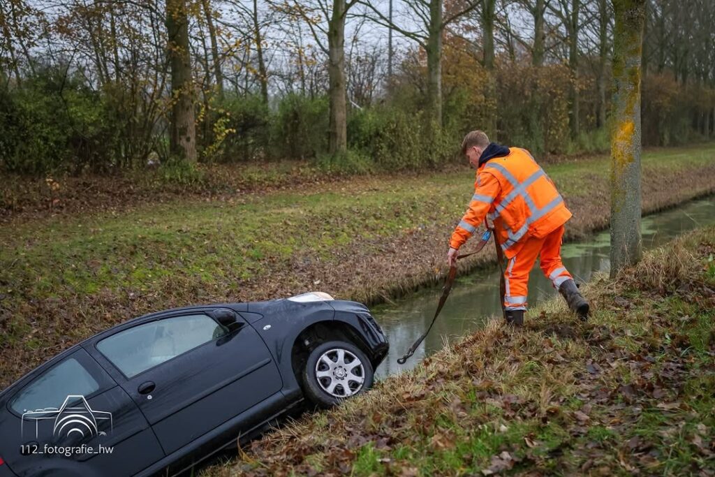 Een bergingsbedrijf is ingeschakeld om het voertuig uit het water te halen. Nadat de auto weer op de weg stond, bleek deze nog op eigen kracht naar een veilige locatie te kunnen rijden.