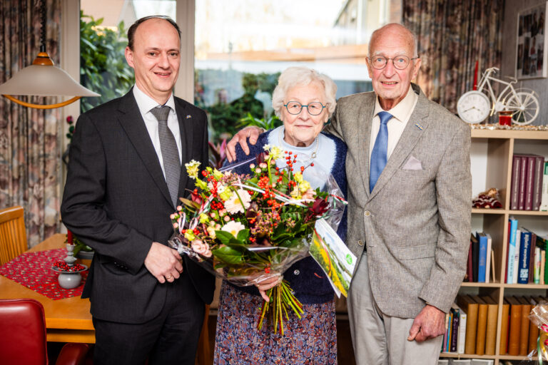 Het is vandaag, 15 december, 60 jaar geleden dat meneer C. Schipper (82) en mevrouw H. Schipper-Tempelman (83) uit Puttershoek in het huwelijksbootje stapten. Wethouder Adriaan van der Wulp ging vanmiddag langs met een mooie bos bloemen. Hij feliciteerde hen namens het gemeentebestuur met dit diamanten jubileum.