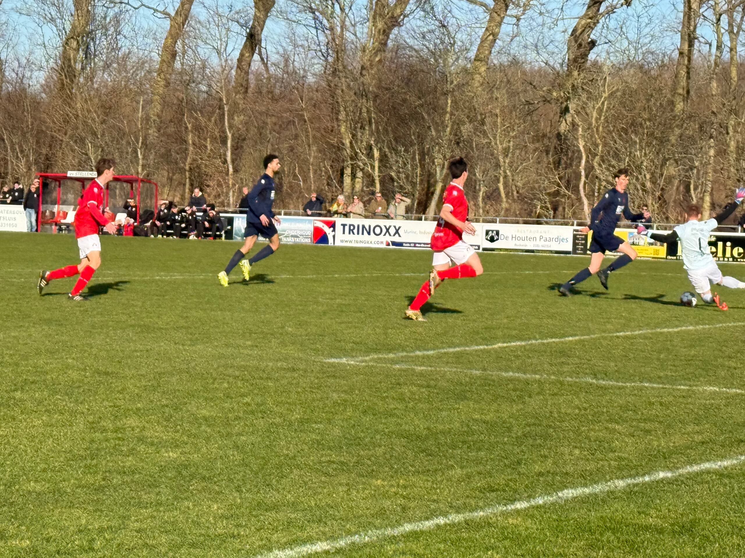 Het eerste wapenfeit kwam in de 27e minuut, toen Niels Nederlof een schot naast het doel zag verdwijnen. Twee minuten later was het wél raak. Mark de Bie ontving de bal, omspeelde zijn tegenstander en haalde kiezelhard uit. De keeper van Stellendam was kansloos: 0-1.