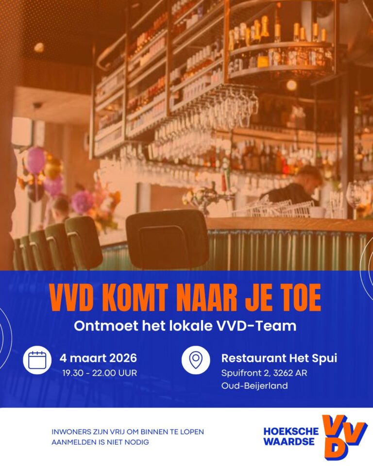Hoeksche Waard – Op woensdagavond 4 maart organiseert de VVD Hoeksche Waard een inloopavond voor inwoners van de Hoeksche Waard. Tijdens deze avond kunnen inwoners kennismaken met de VVD-kandidaten voor de komende gemeenteraadsverkiezingen en met hen in gesprek gaan over wat er speelt in de gemeente.