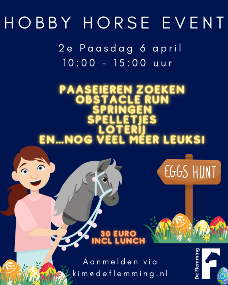 De dag begint feestelijk met paaseieren zoeken, waarna een programma vol hobby horse-activiteiten volgt. Kinderen kunnen meedoen met hun eigen stokpaardje, maar ook zonder eigen hobby horse is deelname mogelijk: De Flemming stelt stokpaardjes beschikbaar.