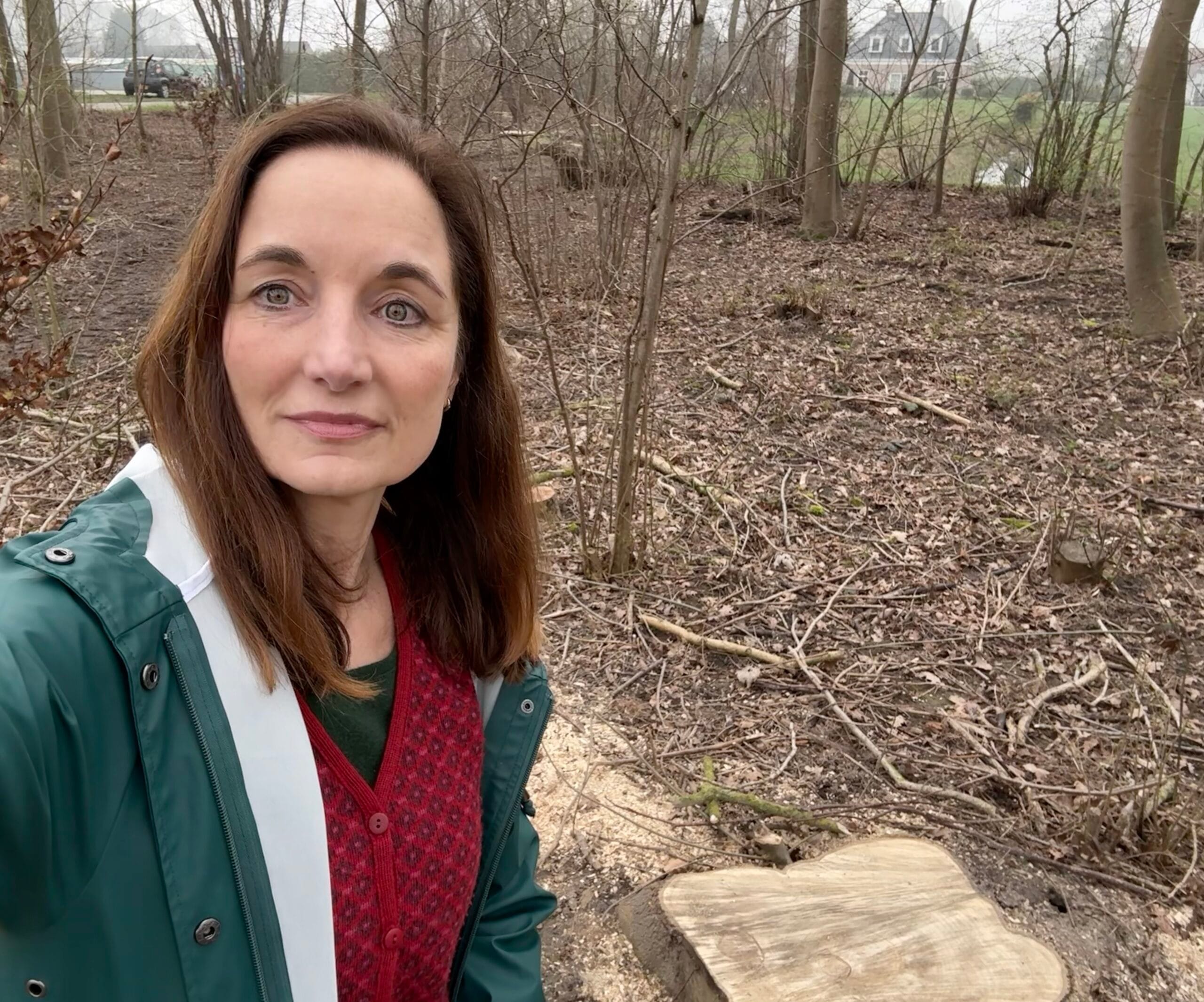 Bij naspeuring in de nu twee kale natuurpercelen valt Heimans en Kievit op dat er sinds kort her en der stekjes van beuken en hulst in de grond staan. Waarschijnlijk om de gevelde oude bomen te compenseren. Al valt Joost Kievit bij telling op dat er nog maar de helft staat van het aantal dat is gekapt. “Maar kunnen deze beukjes en hulst in de toekomst het verdwijnen van de grote bomen vervangen, zijn ze wel goed voor de biodiversiteit?” vraagt Tania Heimans hoopvol. Joost Kievit moet haar teleurstellen: “Voor de biodiversiteit is dit geenechte aanwinst. In vergelijking met wat hier is gekapt, zullen te weinig diersoorten hier iets aan hebben. Beuk en hulst passen niet echt in een kleigebied als het onze en zijn als vervanging een ongelukkige keuze. De 160 oude bomen die nu gekapt zijn, zijn een aderlating voor de biodiversiteit en voor het klimaat. Eeuwig zonde.”