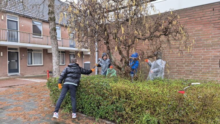 Ondanks de grijze luchten en de aanhoudende regen was de sfeer in de Bloemenbuurt allesbehalve somber. De leerlingen gingen in kleine groepjes uiteen om de straten en plantsoenen te ontdoen van zwerfafval. “Het is eigenlijk best gek wat mensen allemaal op de grond gooien,” merkte een van de leerlingen op terwijl hij een blikje in zijn zak deponeerde.
