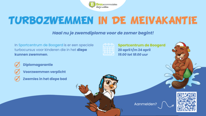 Oud-Beijerland – Sportcentrum de Boogerd organiseert in de meivakantie een speciale turbocursus voor het Zwemdiploma A. Deze cursus is bedoeld voor kinderen die al in het diepe kunnen zwemmen en toe zijn aan de afrondende fase van hun A-diploma.