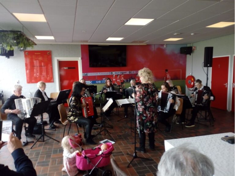Klaaswaal – Het was vrijdag feest in de voetbalkantine van Klaaswaal tijdens een bijeenkomst van de Algemene Senioren Vereniging Klaaswaal. Na afloop van de ledenvergadering zorgde het Hoeksche Waards Accordeonorkest voor een muzikale afsluiting die al snel uitgroeide tot een gezellige en uitbundige middag.